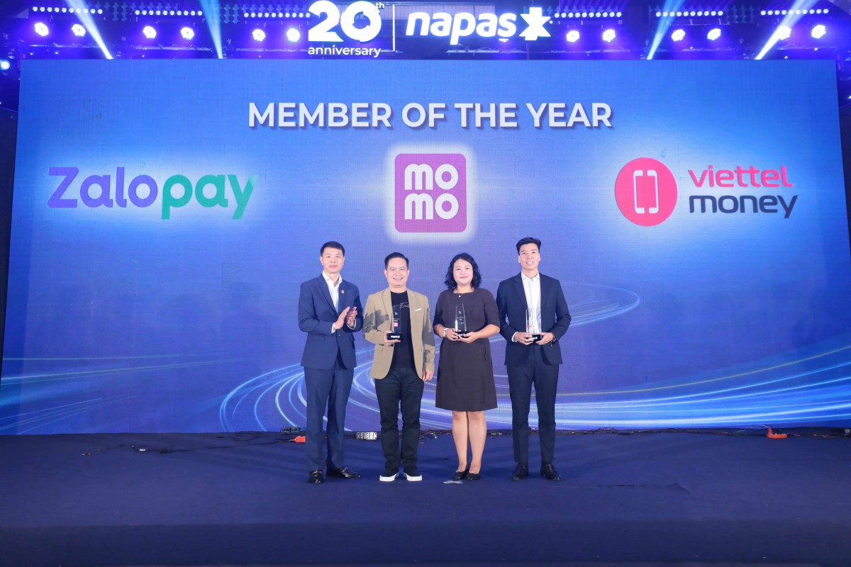 | Các hạng mục giải thưởng Lễ vinh danh các TGTT xuất sắc do NAPAS trao tặng: I. Giải TGTT dẫn đầu về tổng giá trị giao dịch - Member of the year 2024 1. Trung gian thanh toán Kim cương: Công ty Cổ phần Dịch vụ di động trực tuyến (MOMO). 2. Trung gian thanh toán Bạch kim: Tổng công ty dịch vụ số Viettel – Chi nhánh Tập đoàn Công nghiệp - Viễn thông Quân đội (VIETTEL DIGITAL) 3. Trung gian thanh toán Vàng: Công ty cổ phần Zion (ZALOPAY). II. Giải TGTT dẫn đầu về doanh số dịch vụ Thanh toán trực tuyến - Leading Member in E-Commerce Volume 2024 1. Trung gian thanh toán Kim cương: Công ty Cổ phần Thương mại và Dịch vụ trực tuyến OnePay (ONEPAY). 2. Trung gian thanh toán Bạch kim: Công ty Cổ phần Thanh toán điện tử VNPT (VNPT EPAY). 3. Trung gian thanh toán Vàng: Công ty Cổ phần Cổng Trung gian Thanh toán Ngân Lượng (NGÂN LƯỢNG) III. Giải TGTT dẫn đầu về tốc độ tăng trưởng doanh số dịch vụ thanh toán trực tuyến - Leading Member in Volume Growth 2024: Công ty Cổ phần Thương mại và Dịch vụ trực tuyến OnePay (ONEPAY). IV. Giải TGTT năng động – Dynamic Member: 1. Công ty Cổ phần ShopeePay (SHOPEE PAY). 2. Công ty CP Dịch vụ trực Tuyến Cộng Đồng Việt (PAYOO). 3. Công ty TNHH GALAXYPAY (GALAXYPAY). 4. Trung tâm dịch vụ tài chính số VNPT - Tổng công ty truyền thông (VNPT FINTECH) 5. Trung tâm dịch vụ số Mobifone - Chi nhánh Tổng Công ty viễn thông Mobifone (MDS). 6. Công ty Cổ phần Viễn thông FPT (FPTPAY). |