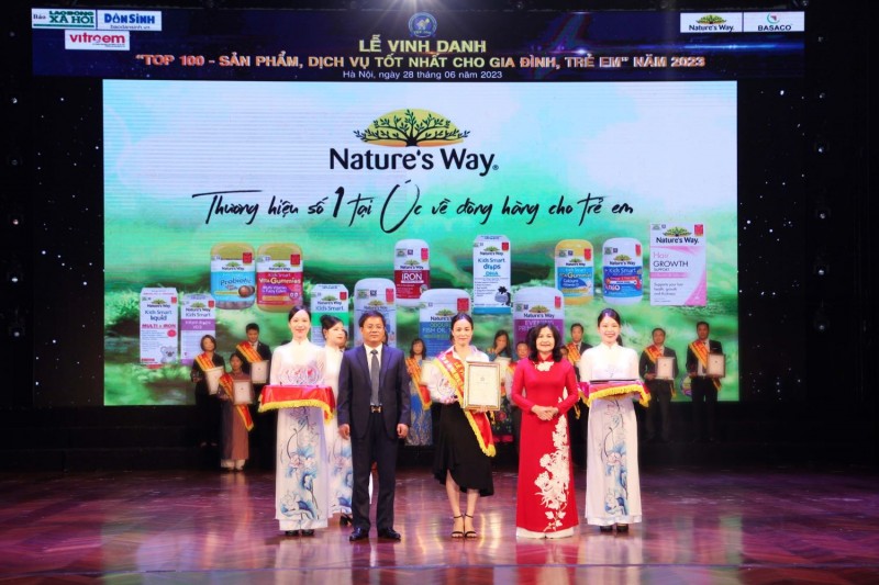 Năm nay, thương hiệu Nature's Way đã tiếp tục được vinh danh trong top 100 Sản phẩm dịch vụ tốt nhất cho gia đình, trẻ em và đây là lần thứ 3 liên tiếp Nature's Way đạt được vinh dự này. Đặc biệt, năm nay Nature's Way còn được đánh giá là thương hiệu tiêu biểu và logo của Nature's Way được xuất hiện xuyên suốt lễ vinh danh.