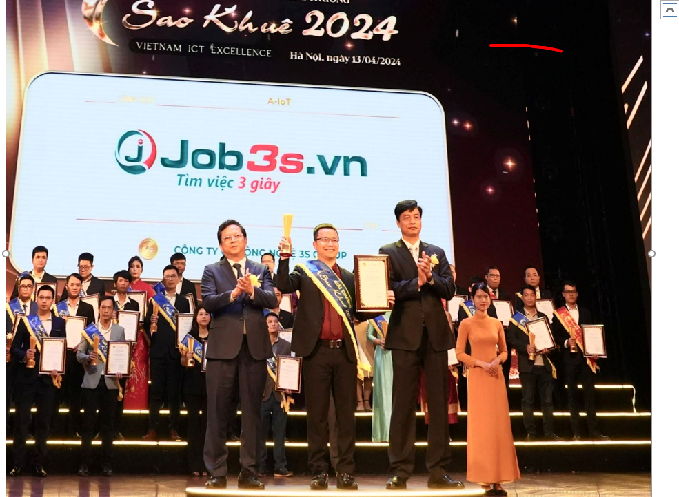 Theo công bố chính thức của ban tổ chức giải thưởng Sao Khuê, job3s.vn - Nền tảng tuyển dụng trực tuyến tại Việt Nam, tích hợp công nghệ AI để kết nối ứng viên và nhà tuyển dụng một cách hiệu quả do Công ty Công nghệ 3S GROUP nghiên cứu và phát triển đã xuất sắc giành được Giải thưởng Sao Khuê 2024 tại hạng mục A-IoT.