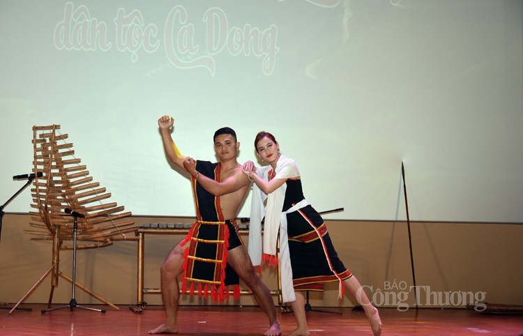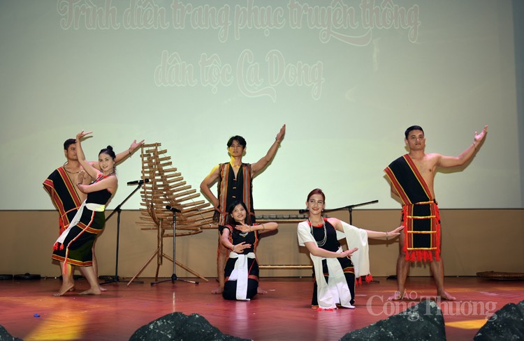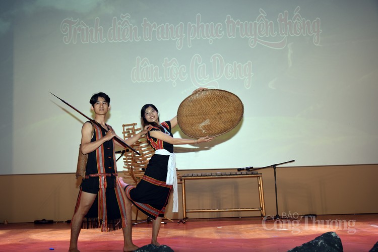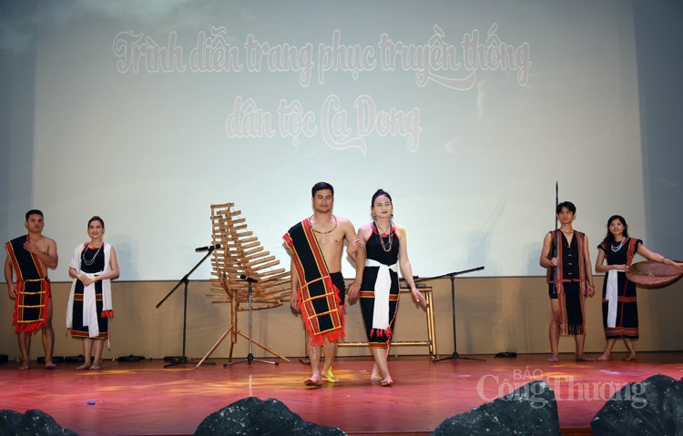 | Nam nữ đồng bào dân tộc Ca Dong trình diễn trang phục truyền thống |