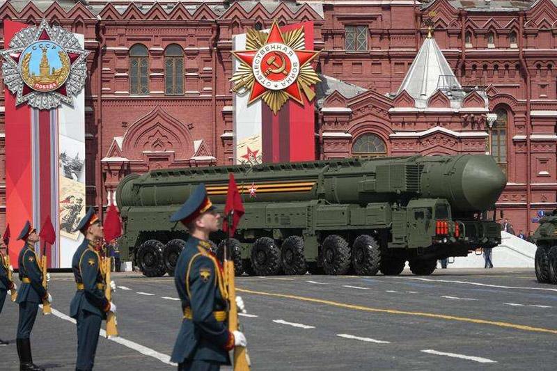 Trong cuộc tổng duyệt hôm 7/5, một tên lửa đạn đạo xuyên lục địa RS-24 Yars tham gia đoàn diễu binh qua Quảng trường Đỏ, trong khi các máy bay chiến đấu và trực thăng di chuyển trên đầu.