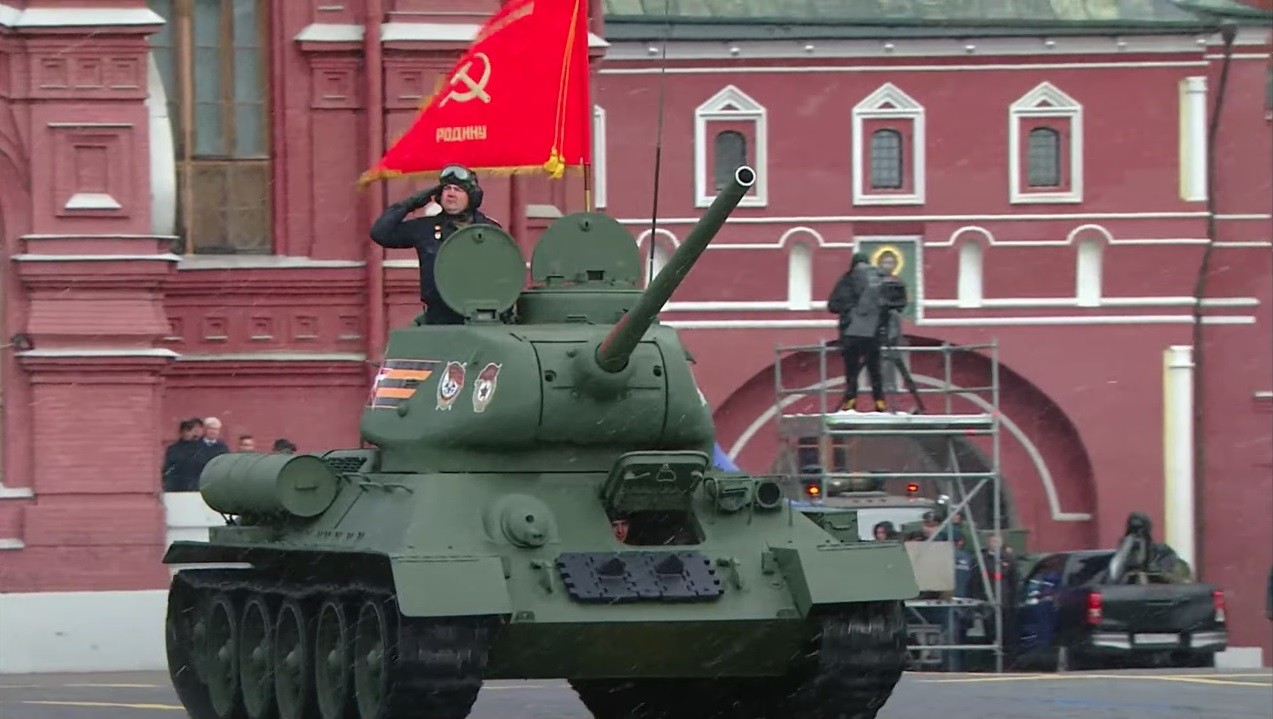 | Khối phương tiện chiến đấu mặt đất do xe tăng hạng trung huyền thoại T-34-85 dẫn đầu và sau đó là khối duyệt binh trên không của các đơn vị máy bay quân sự |