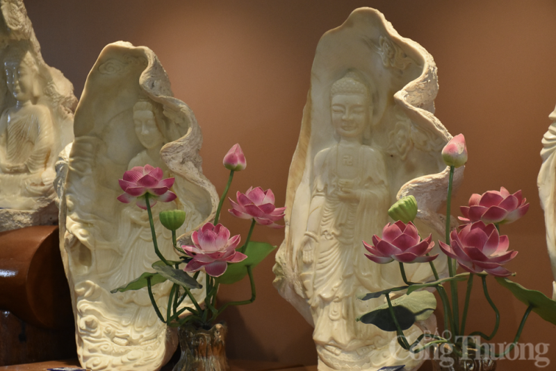 | Mỗi tác phẩm điêu khắc trên những vỏ ốc này nhằm mục đích đền ơn, ca ngợi công đức của các vị Phật, Bồ Tát cùng ý nghĩa bình an, may mắn. |