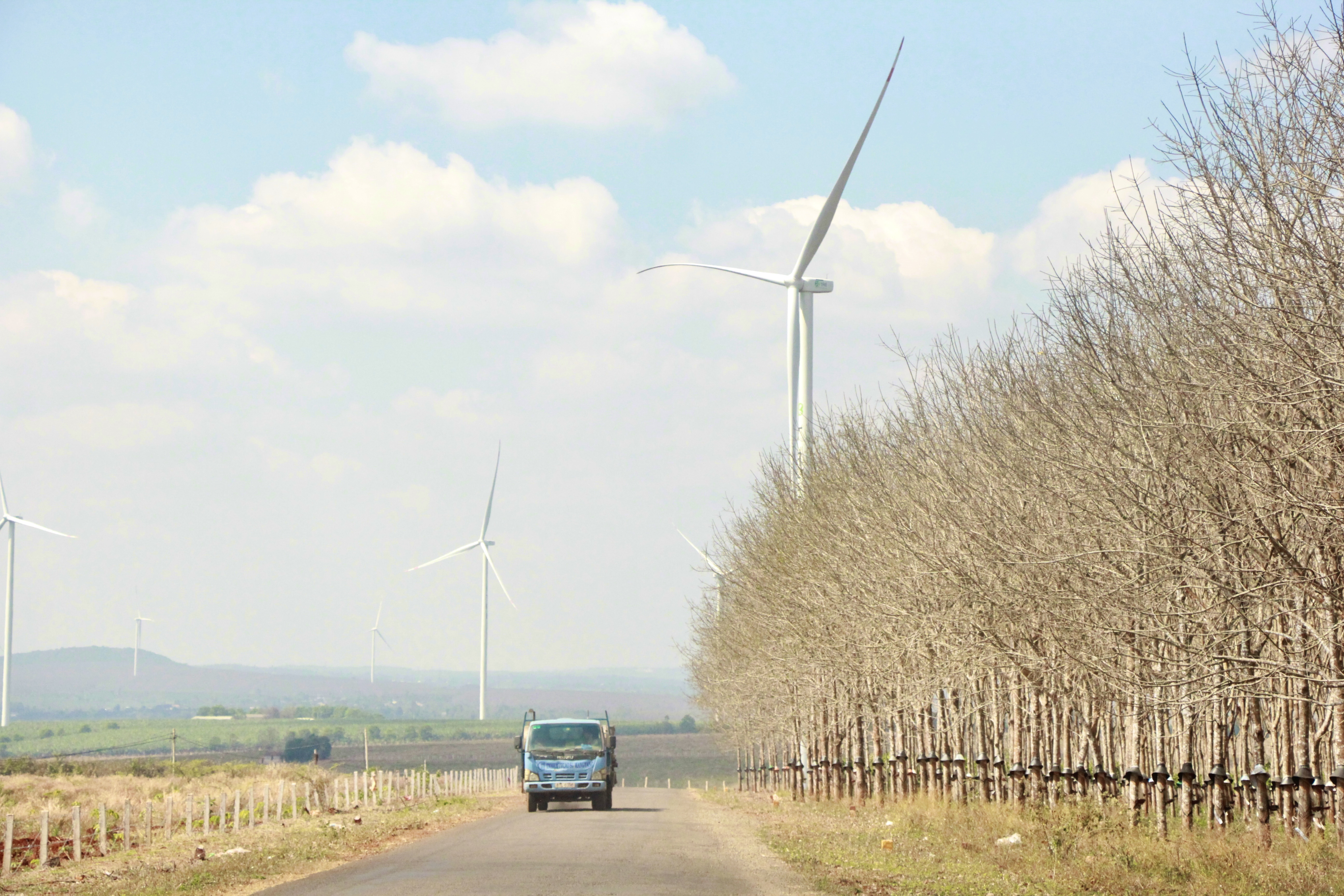 Trên nền rừng cao su đang thay lá, những trụ turbine gió sừng sững vươn cao, lặng lẽ nhưng bền bỉ thực hiện sứ mệnh tạo ra nguồn năng lượng sạch cho hệ thống điện quốc gia.