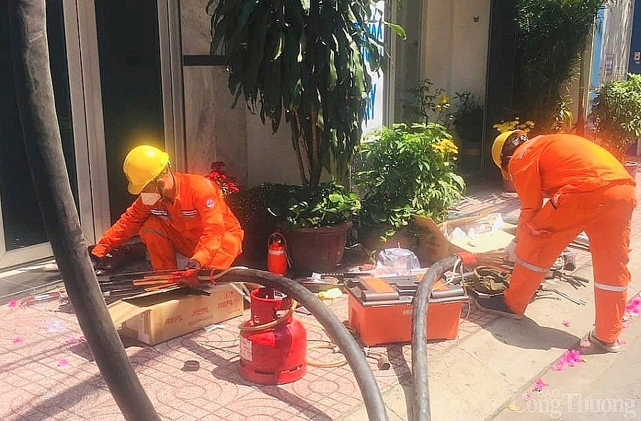 Công nhân ngành điện kết hợp thi công trực tiếp và live-line để đẩy nhanh tiến độ ngầm hóa lưới điện |
