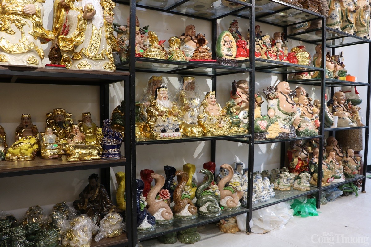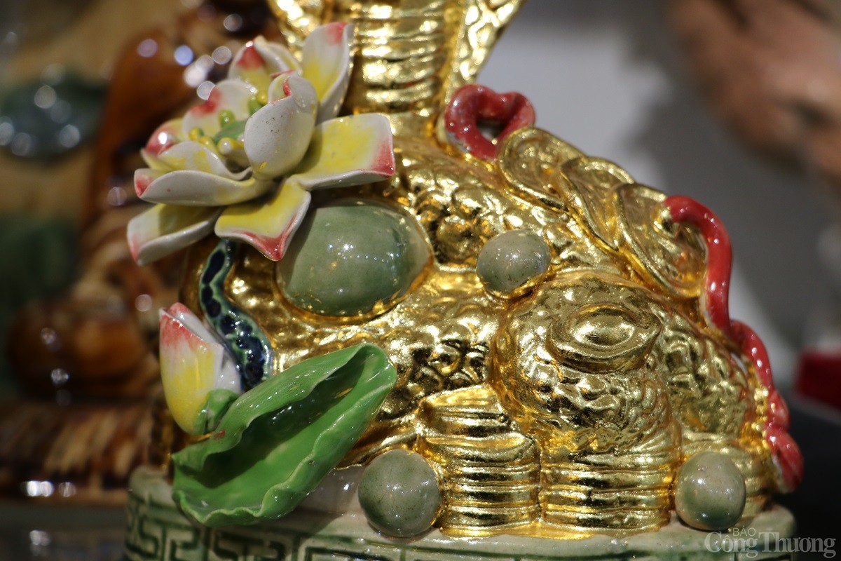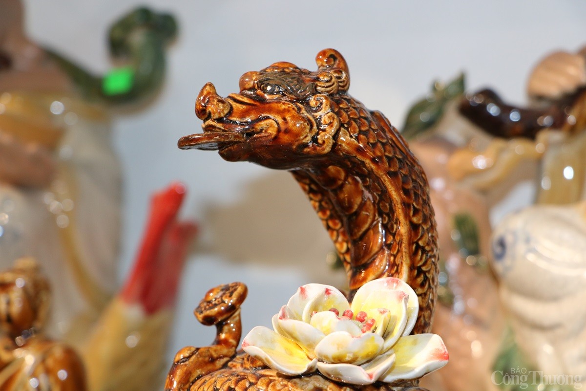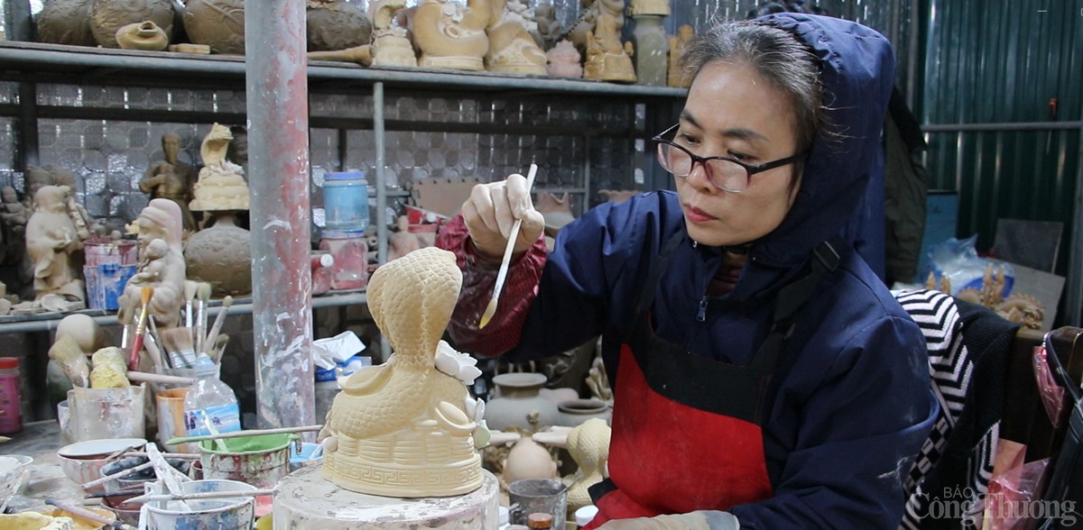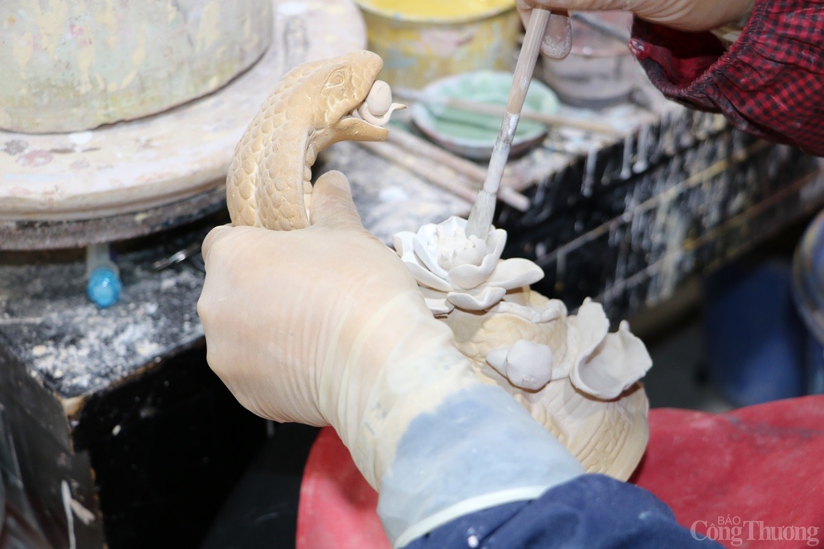 Tại làng nghề gốm sứ Bát Tràng (xã Bát Tràng, huyện Gia Lâm, Thành phố Hà Nội), các cơ sở sản xuất hàng gốm sứ đang tất bật cho ra các sản phẩm phục vụ Tết Nguyên đán 2025. Song song với những mặt hàng truyền thống như bát, chén, chậu, bình..., có cơ sở còn sản xuất mặt hàng linh vật rắn dát vàng 24k được nhiều người tiêu dùng săn đón.