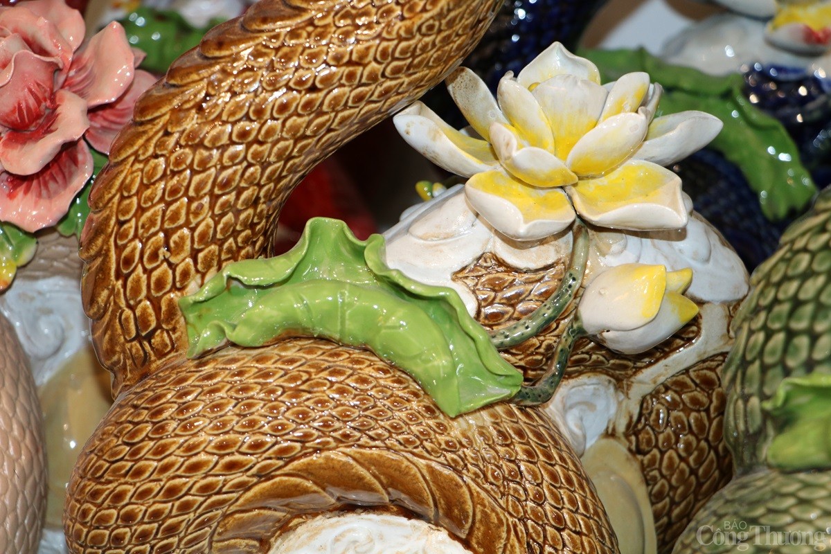 Anh Nguyễn Thùy Dương, chủ xưởng sản xuất gốm Dương Yến cho biết, để cho ra một sản phẩm rắn gốm sứ, những người thợ làm gốm phải thực hiện nhiều công đoạn từ tạo hình nặn cốt, gọt tỉa, khắc họa... rất cầu kỳ. Sau đó, đem sản phẩm đi nung ở nhiệt độ 1.200 độ C.