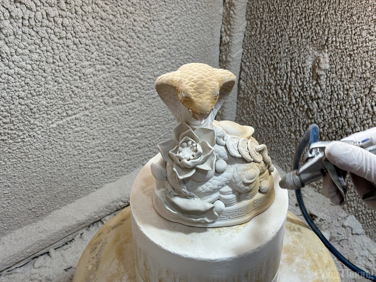 Dưới đây là một số hình ảnh về linh vật rắn dát vàng 24k tại làng gốm Bát Tràng chế tác: