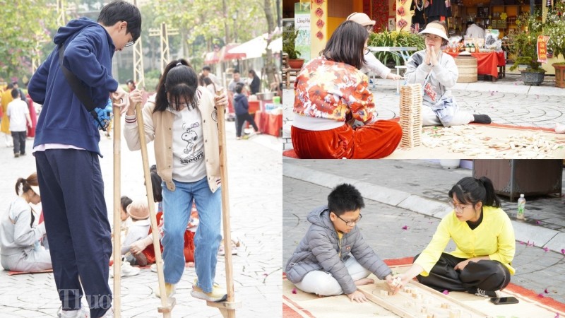Hội chợ cũng cũng tổ chức nhiều hoạt động, trò chơi mang phong vị Tết cổ truyền dành cho các em nhỏ như: đi cà kheo, ô ăn quan,…. |
