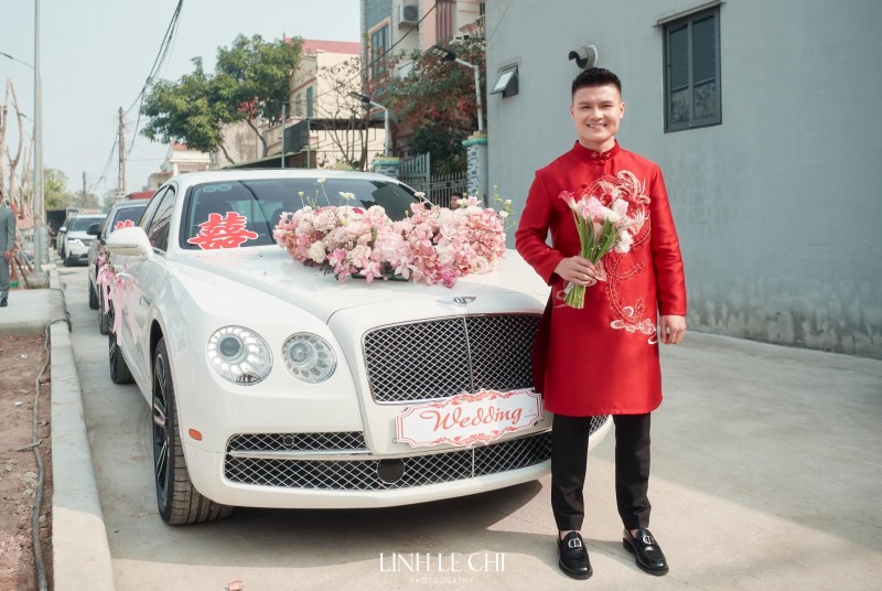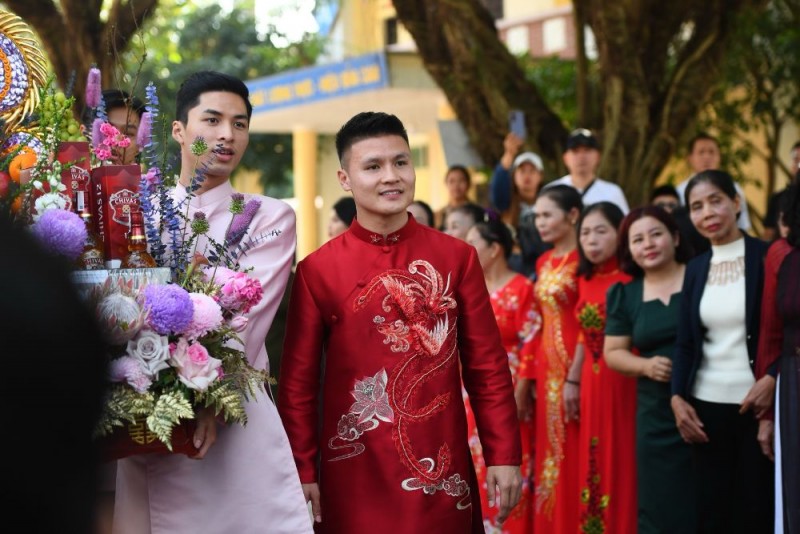 | Quang Hải di chuyển đi ăn hỏi từ nhà trai tại làng Đường Nhạn, xã Xuân Nộn, huyện Đông Anh sang xã Kim Sơn, thị xã Sơn Tây. Tiền vệ sinh năm 1997 dùng dàn xe sang trọng đi làm lễ gồm Rolls-Royce, Bentley di chuyển quãng đường khoảng 50 km. |