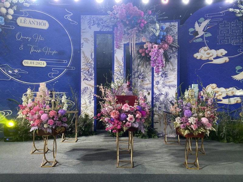 Khác nhiều đám hỏi khác, sau lễ ăn hỏi ở nhà gái ở Sơn Tây, chú rể Quang Hải rước cô dâu về nhà mình ở Đông Anh luôn hôm nay. Lễ cưới sẽ được tổ chức vào một ngày gần đây.