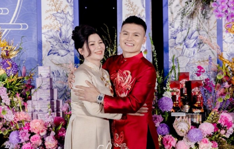 | Mẹ Quang Hải và con trai trong ngày ăn hỏi của con |