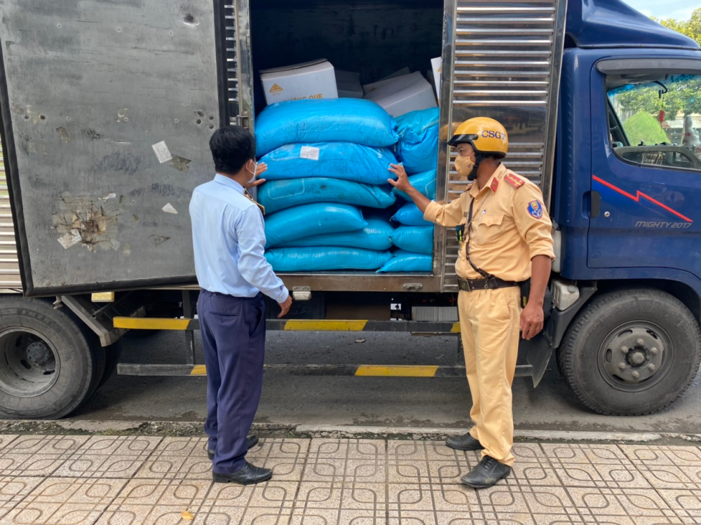 Vừa qua, Đội Quản lý thị trường số 1 thuộc Cục Quản lý thị trường tỉnh Tiền Giang phối hợp với Đội Cảnh sát giao thông Công an thành phố Mỹ Tho chặn dừng và tiến hành khám 01 phương tiện ô tô tải do nghi vấn phương tiện này đang vận chuyển hàng hóa có dấu hiệu vi phạm.