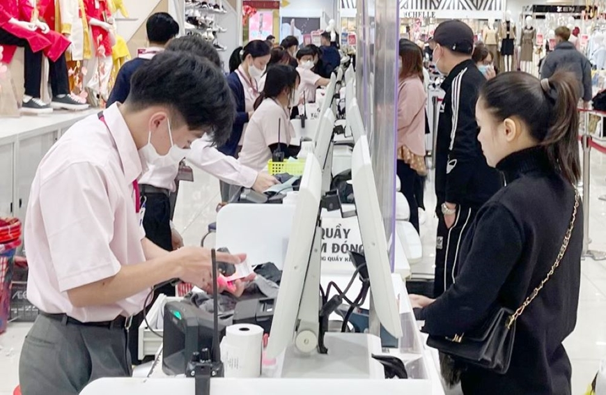 | Khách hàng thanh toán tiền mua hàng tại Trung tâm thương mại Aeon Mall, quận Long Biên, Hà Nội |