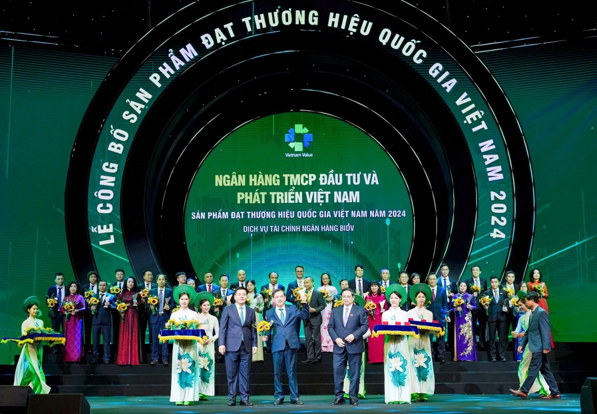 Với chủ đề “Vươn mình tiến vào kỷ nguyên Xanh”, Chương trình Thương hiệu quốc gia Việt Nam năm 2024 vinh danh 190 doanh nghiệp với tổng số 359 sản phẩm. Với những kết quả khả quan trong hoạt động kinh doanh, những đóng góp tích cực đối với sự phát triển kinh tế xã hội đất nước nói chung và Chiến lược quốc gia về tăng trưởng xanh nói riêng, BIDV đã được vinh danh “Thương hiệu quốc gia”. Đây là lần thứ 8 BIDV có được vinh dự này.