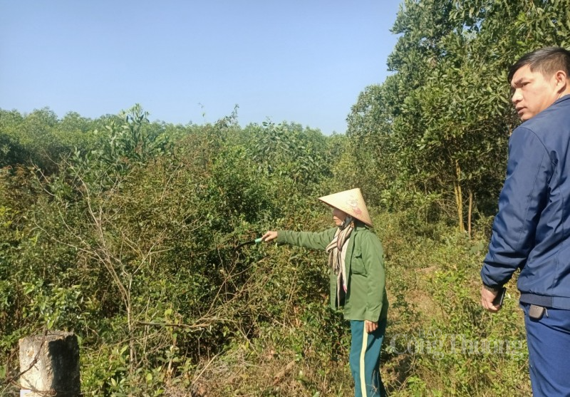 Bà Phượng chỉ tay, giới thiệu cánh rừng keo rộng hàng héc ta giáp ranh với nghĩa trang của xã đã có bìa đất lâm bạ mang tên bà. Tuy đất rừng mang tên bà nhưng việc bán đất rừng phải có sự thống nhất của anh trai bà tên là Long.
