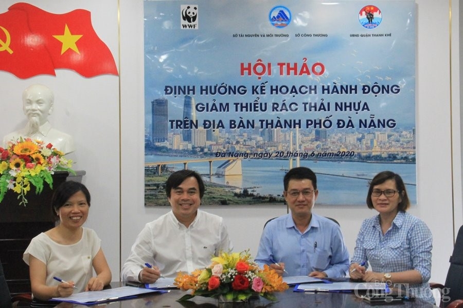 Tại hội thảo, đại diện các đơn vị WWF, Sở Tài nguyên & Môi trường, Sở Công Thương, UBND quận Thanh Khê đã cùng ký cam kết hành động để giảm thiểu rác thải nhựa.