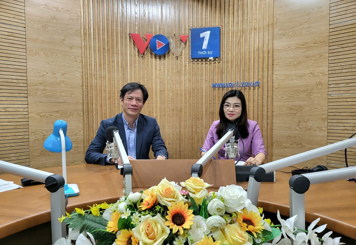 | Nhà báo Nguyên Long (bên phải) trong một chương trình phát sóng của Đài Tiếng nói Việt Nam (Ảnh: FB nhân vật) |