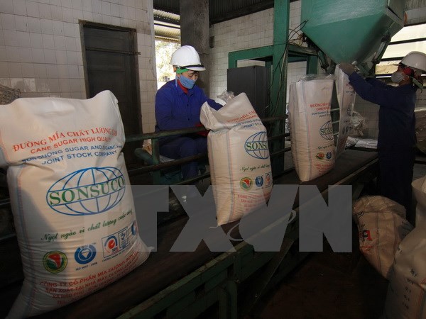 Đóng bao sản phẩm đường tinh luyện tại Công ty cổ phần Mía đường Sơn Dương, tỉnh Tuyên Quang.