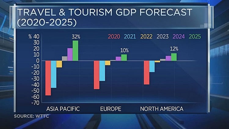 Tại châu Á - Thái Bình Dương, con số này thậm chí còn tăng cao hơn, với đóng góp của du lịch vào GDP dự kiến sẽ tăng với tốc độ trung bình hàng năm là 8,5%. WTTC dự đoán ngành du lịch toàn cầu sẽ có thêm 126 triệu việc làm mới trong thập kỷ tới. Trong số này, khoảng 65% sẽ ở châu Á - Thái Bình Dương.