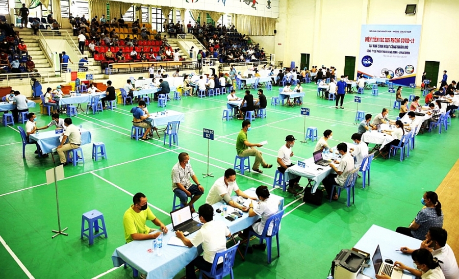 | Điểm tiêm vắc - xin phòng Covid-19 của TKV tại Nhà sinh hoạt công nhân mỏ Công ty CP Than Vàng Danh |