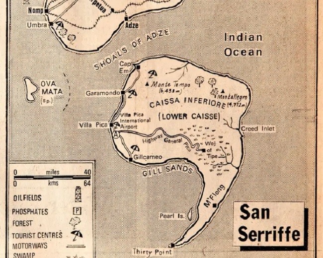 Trong ngày Cá tháng Tư năm 1977, tờ Guardian của Anh đã đăng "phóng sự đặc biệt" dài 7 trang về San Serriffe, một nước cộng hòa nhỏ nằm ở Ấn Độ Dương, tạo thành từ nhiều hòn đảo, có hình dấu chấm phẩy. Cùng với phóng sự là một loạt bài báo mô tả chi tiết về địa lý và văn hóa của quốc gia này.