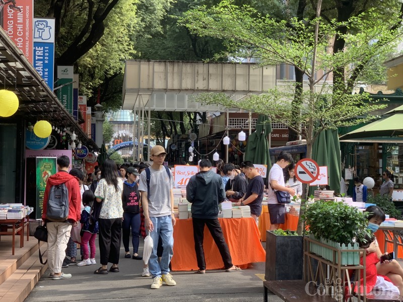 Đường sách Nguyễn Văn Bình (quận 1) là một điểm đến bổ ích của người dân trong những dịp nghỉ lễ |