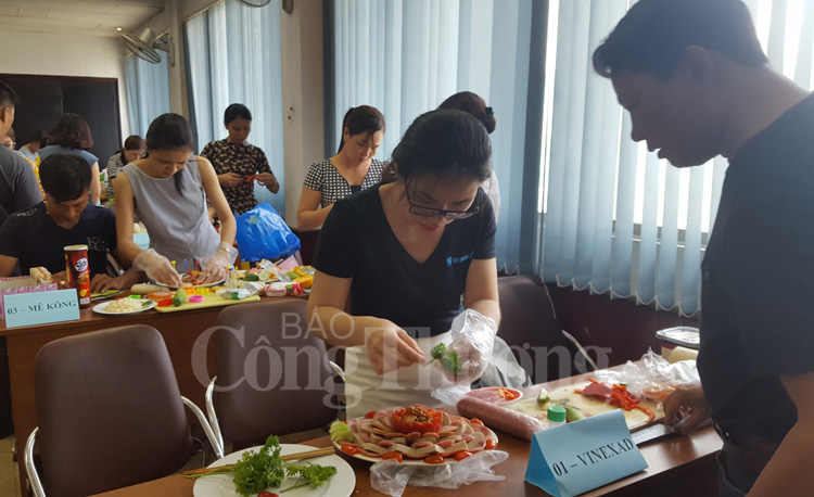 | Các đoàn viên công đoàn cơ sở sôi nổi tham gia Hội thi "Gói yêu thương - Trao hạnh phúc" |