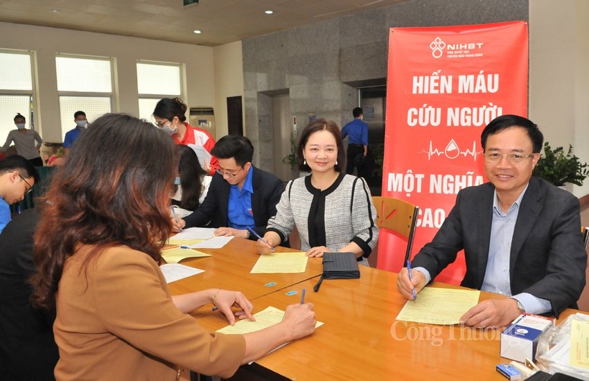 | Các lãnh đạo Bộ Công Thương cùng lãnh đạo các Cục, Vụ, Viện tham gia hiến máu |