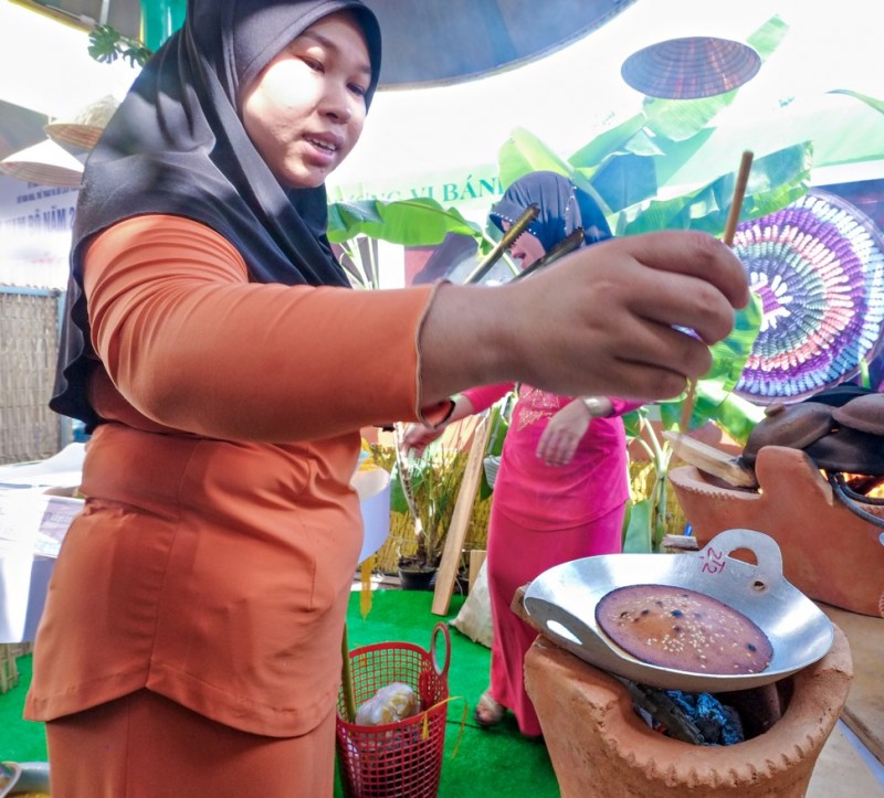 Khu gian hàng đặc sản và biểu diễn cộng đồng tỉnh An Giang (các gian hàng giới thiệu đặc sản tỉnh An Giang, sản phẩm tiêu biểu của các doanh nghiệp trong tỉnh, tái hiện đời sống văn hóa của đồng bào Chăm thị xã Tân Châu, An Giang).