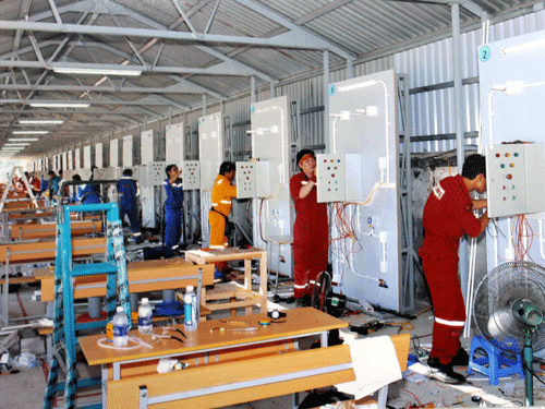 | Thí sinh dự thi nghề Lắp đặt điện dân dụng tại Hội thi tay nghề Dầu khí lần IV |