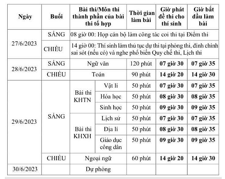 | Lịch thi tốt nghiệp THPT 2023 |
