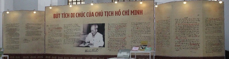 | Bút tích Di chúc của Chủ tịch Hồ Chí Minh trưng bày tại Thư viện Quốc gia |
