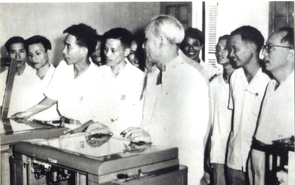 | Chủ tịch Hồ Chí Minh thăm và nghe giới thiệu máy khuếch thanh của CP16 - Cục Bưu điện Trung ương, phục vụ Đại hội Đảng toàn quốc lần thứ III năm 1960 |