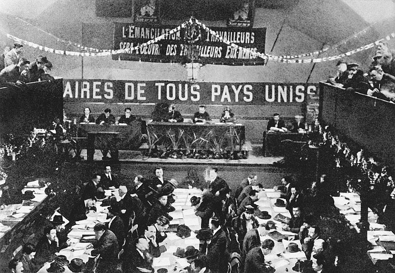 | Toàn cảnh Đại hội đại biểu toàn quốc lần thứ 18 Đảng Xã hội Pháp ở thành Tours, Nguyễn Ái Quốc tham dự với tư cách là đại biểu Đông Dương, tháng 12/1920, (Nguyễn Ái Quốc ngồi đầu dãy bàn thứ hai, phía tay trái Đoàn Chủ tịch) |