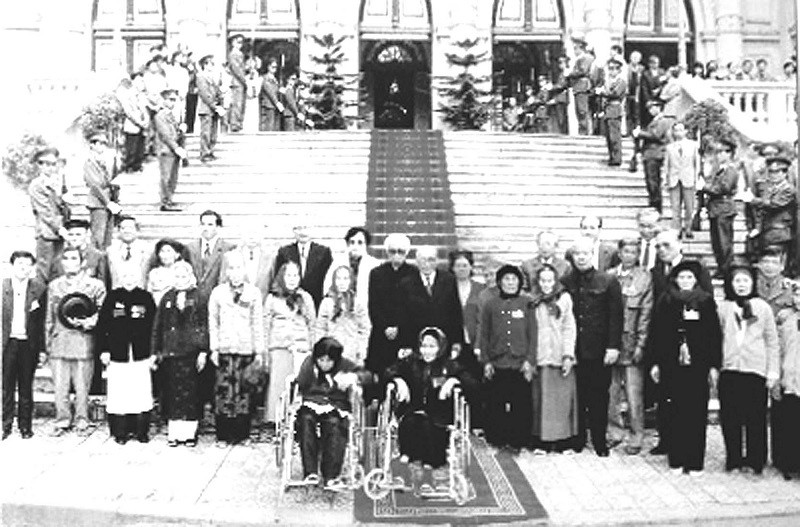 | Các đồng chí lãnh đạo Đảng, Nhà nước, Chính phủ với các bà mẹ được phong tặng danh hiệu "Bà mẹ Việt Nam anh hùng" lần thứ nhất tại Phủ Chủ tịch (năm 1994). Ảnh: QĐND |
