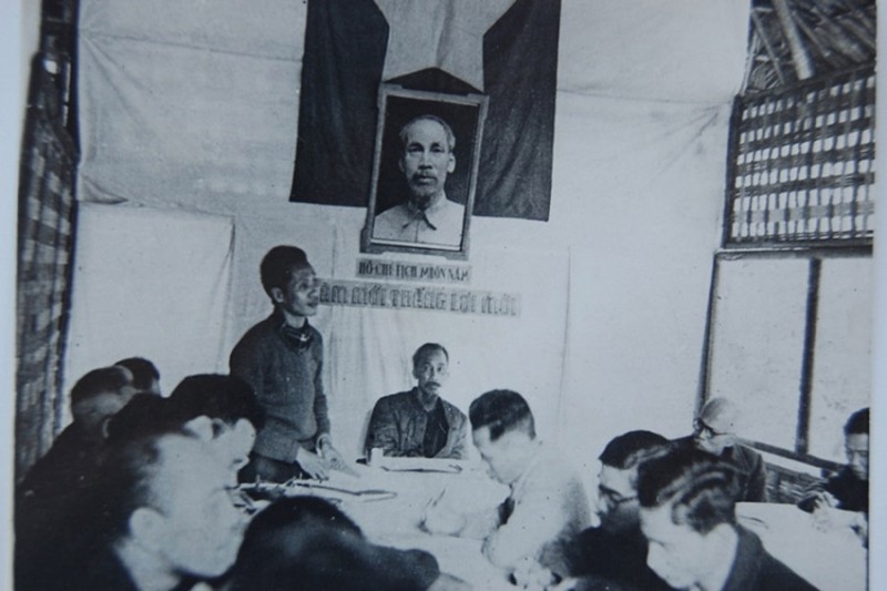 | Chủ tịch Hồ Chí Minh cùng các thành viên Hội đồng Chính phủ đang nghiên cứu bản đồ trong một phiên họp Chính phủ. Ảnh tư liệu |