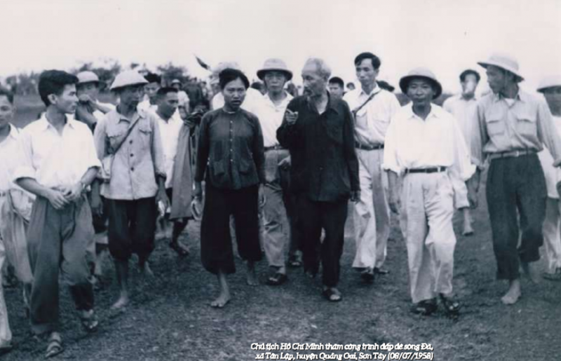 | Chủ tịch Hồ Chí Minh thăm công trình đắp đê sông Đà. Ảnh: Tổng cục Phòng, chống thiên tai |