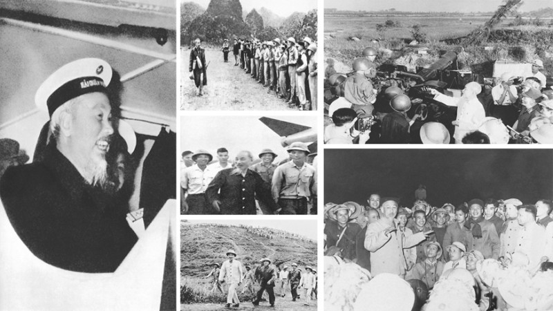 | Chủ tịch Hồ Chí Minh thăm một số đơn vị bộ đội. Ảnh tư liệu QĐND |