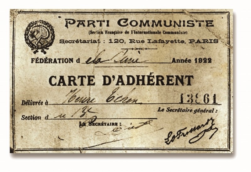 | Thẻ đảng viên Đảng Cộng sản Pháp của Nguyễn Ái Quốc với tên Hăngri Trần (Henri Tchen) năm 1922. Ảnh: hochiminh.vn |