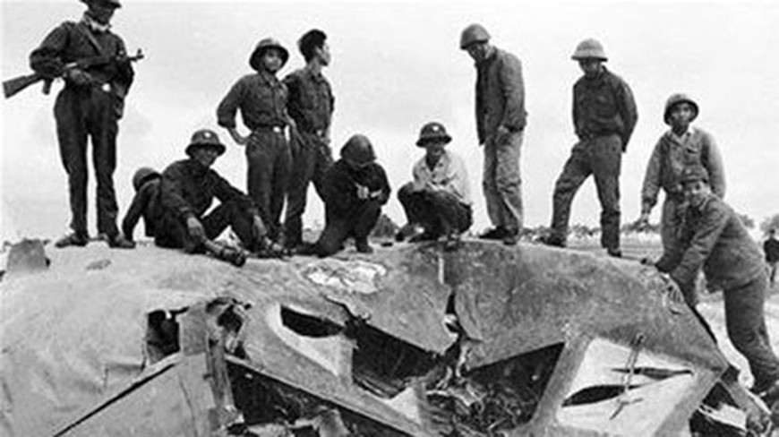 | Xác máy bay B.52 bị bắn rơi trên bầu trời Hà Nội. Ảnh tư liệu. |