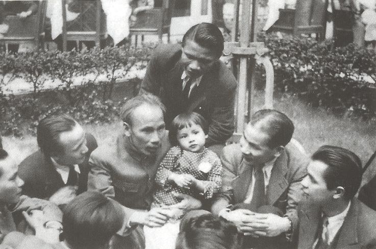 Chủ tịch Hồ Chí Minh gặp gỡ Việt kiều tại Pháp, năm 1946. (Nguồn: Tài liệu lưu trữ Bộ Ngoại giao) |