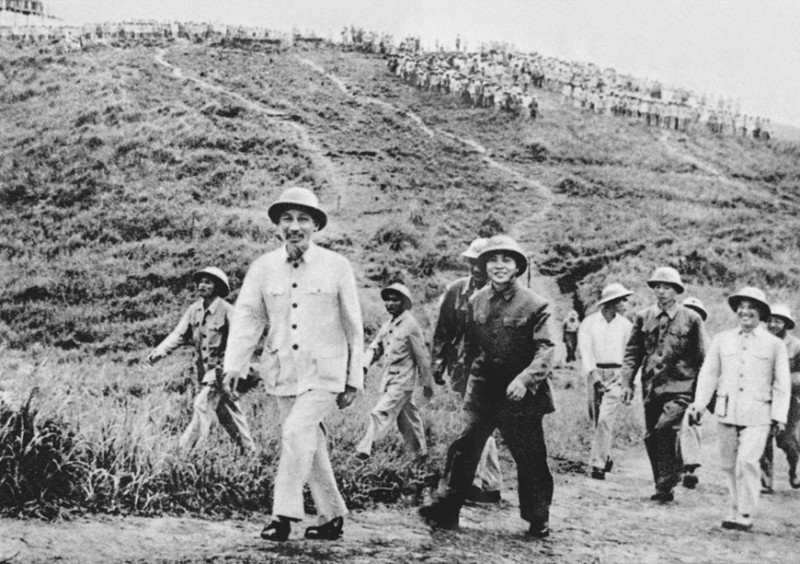 | Chủ tịch Hồ Chí Minh thăm bộ đội diễn tập năm 1957. Ảnh: hochiminh.vn. |