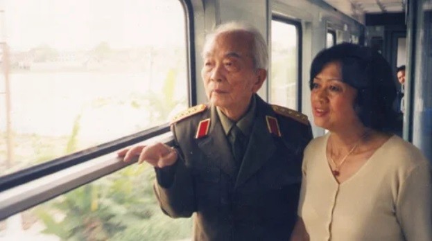 | Bà Võ Hồng Anh chụp ảnh cùng Đại tướng Võ Nguyên Giáp (Ảnh tư liệu) |
