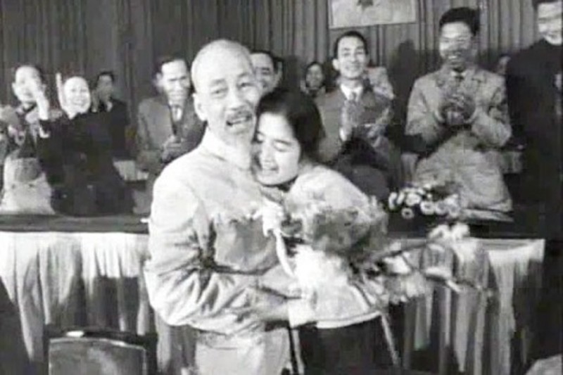 | Nghệ sĩ nhân dân Trà Giang chụp cùng Bác Hồ tại Đại hội văn nghệ toàn quốc lần thứ 3 năm 1962. Ảnh: Ban Quản lý Lăng Chủ tịch Hồ Chí Minh |