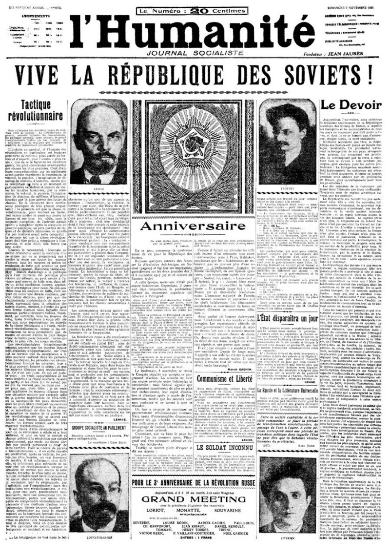 - Ngày 9/1/1923, báo “L’Humanité” (Nhân đạo) của Đảng Cộng sản Pháp đăng bài “Vực thẳm thuộc địa” của Nguyễn Ái Quốc. Bài báo tố cáo giới thực dân một mặt khai thác thuộc địa và bóc lột dân bản xứ thậm tệ để làm giàu không chỉ cho nước Pháp mà cho chính bọn chúng, mặt khác lại yêu cầu chính quốc phải đầu tư nhiều tỷ đồng cho các thuộc địa.