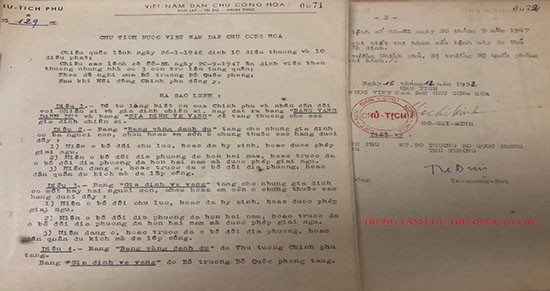 -Ngày 16/12/1952, Chủ tịch Hồ Chí Minh ký sắc lệnh số 129 đặt các “Bảng gia đình vẻ vang” và “Bảng Vàng danh dự” để tặng các gia đình có nhiều người tham gia lực lượng vũ trang (bộ đội chủ lực, bộ đội địa phương và dân quân du kích) và có công lao trong các cuộc kháng chiến.