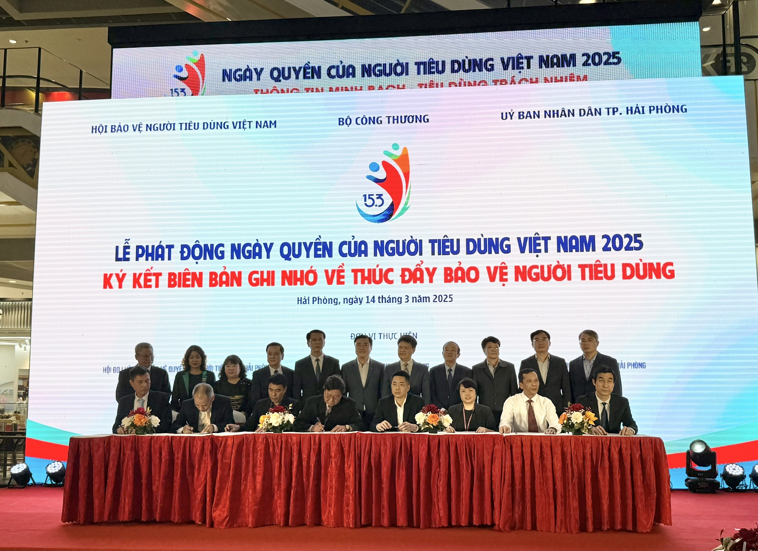 | Tại sự kiện đã diễn ra lễ ký kết các biên bản ghi nhớ (MOU) giữa Sở Công Thương TP. Hải Phòng và các doanh nghiệp về thúc đẩy bảo vệ người tiêu dùng. Theo thống kê của Sở Công Thương TP. Hải Phòng, đến thời điểm hiện tại đã có gần 500 doanh nghiệp đăng ký tham gia hưởng ứng Ngày quyền của người tiêu dùng Việt Nam thông qua ký cam kết gửi Sở Công Thương và trực tiếp tại Lễ phát động, tăng gần 130% so với năm 2024. |
