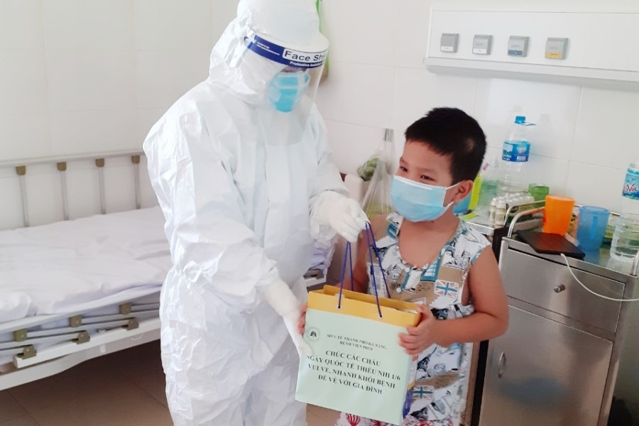 Ở trong hoàn cảnh đặc biệt, tại khu vực “nội bất xuất, ngoại bất nhập”, tuy nhiên, không vì thế mà các em nhỏ không được đón Tết thiếu nhi. Ngược lại, bệnh viện và các tổ chức, đơn vị đã mang đến cho các em một ngày lễ đặc biệt. Bệnh viện cùng với sự hỗ trợ của một số mạnh thường quân đã chuẩn bị những phần quà để trao đến từng em nhỏ trong khu điều trị Covid – 19. “Những món quà tuy nhỏ nhưng là tình cảm của mọi người cũng như bệnh viện để các cháu có Tết Thiếu nhi trong khu điều trị Covid – 19, chỉ với mong muốn các cháu nhanh khỏe, hết bệnh và trở về với gia đình”, Bác sĩ Phúc chia sẻ.