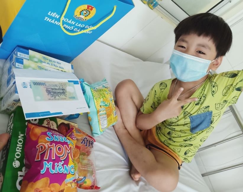Cùng với những phần quà từ bệnh viện, công đoàn Sở Y tế Đà Nẵng, nhiều tổ chức, đơn vị cũng thông qua bệnh viện, trung tâm y tế để gửi những phần quà cho các bệnh nhi Covid – 19. Trong sáng 1/6, Liên đoàn Lao động TP. Đà Nẵng đã gửi 18 suất quà, mỗi phần quà trị giá 700 nghìn đồng (gồm tiền mặt và nhu yếu phẩm) gửi đến các em nhỏ đang điều trị Covid – 19 tại Bệnh viện Phổi và Trung tâm Y tế huyện Hòa Vang.